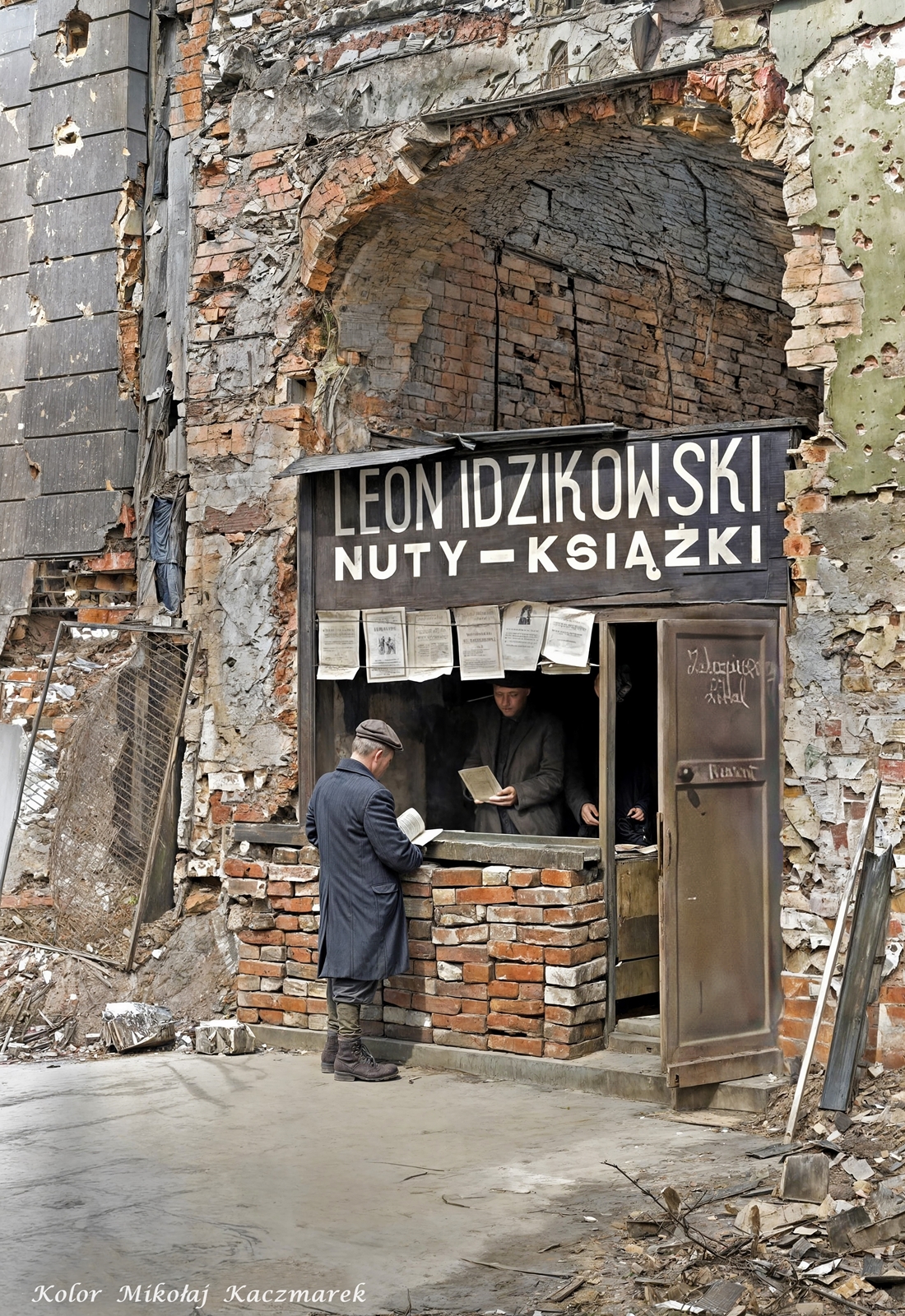 Na zdjęciu: Warszawa 1945 r. Znane ujęcie Karola Szczepańskiego prowizorycznej Księgarni Leona Idzikowskiego w ruinach przy ul. Kruczej 46.
